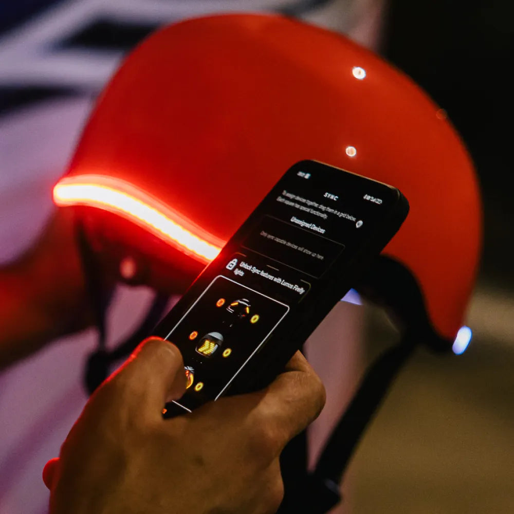 Nyxel connects with the Lumos App, letting you manage lighting and ride settings from one interface for a more focused ride.