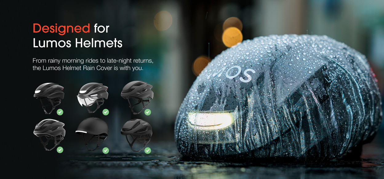 A reflective silver Lumos logo on the front adds a premium look and extra on-road visibility — perfect for commutes in rainy days.